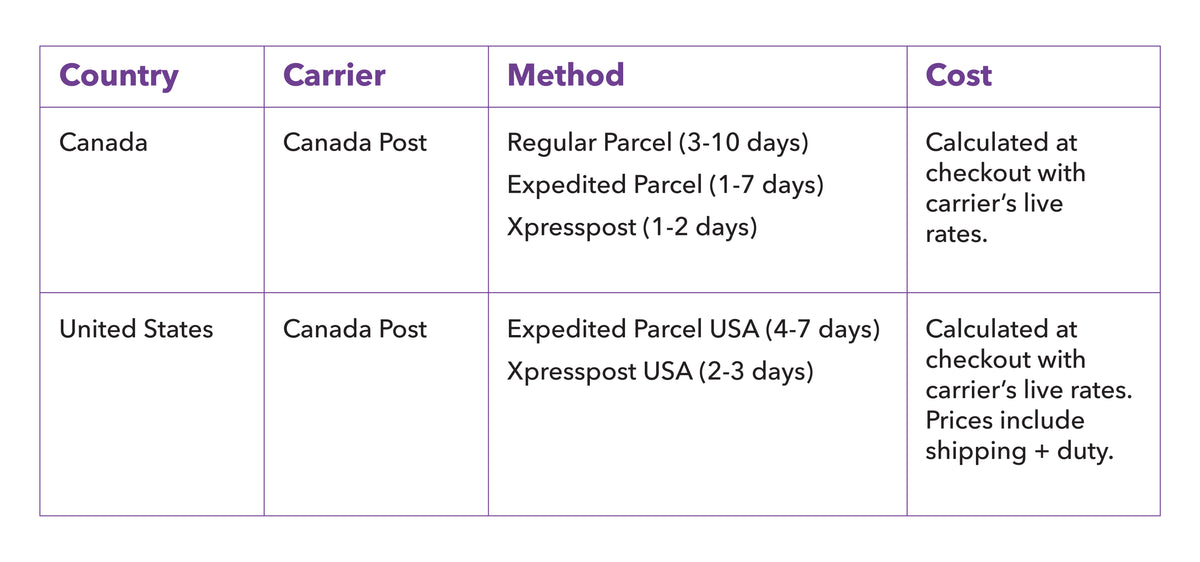 Projected delivery dates are in business days. Our products ship from our warehouse in North Vancouver, BC, Canada.
